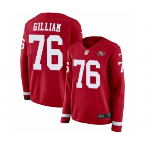 Women's Nike San Francisco 49ers #76 Garry Gilliam Limited Red Therma Long Sleeve NFL Jersey