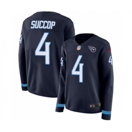 >Women's Nike Tennessee Titans #4 Ryan Succop Limited Navy Blue Therma Long Sleeve NFL Jersey