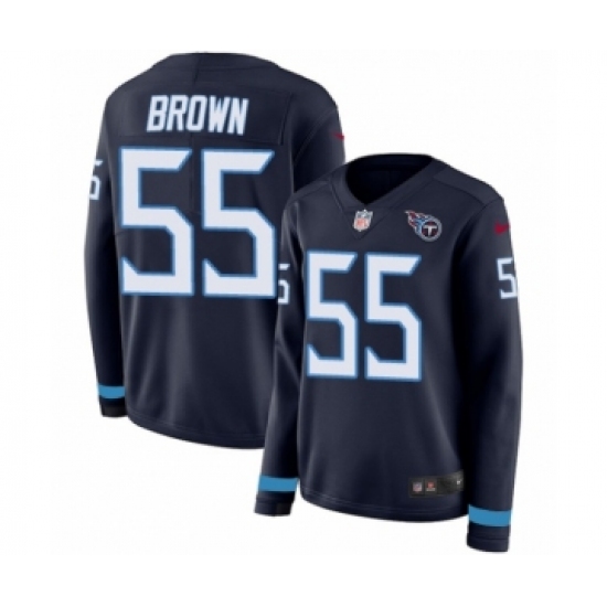 >Women's Nike Tennessee Titans #55 Jayon Brown Limited Navy Blue Therma Long Sleeve NFL Jersey
