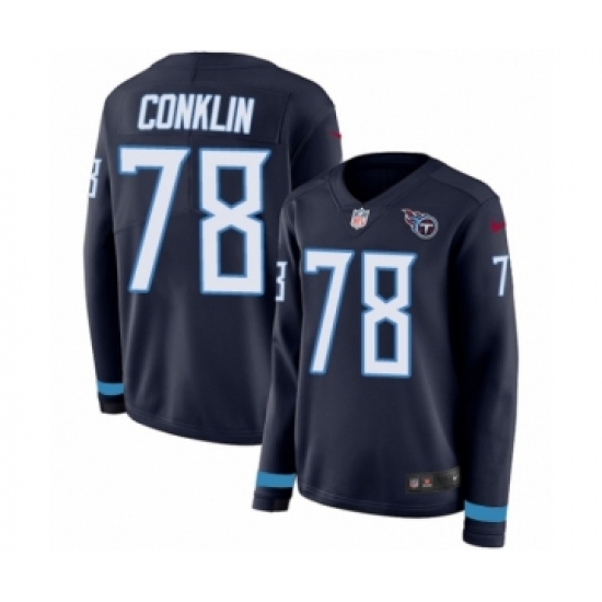 Women's Nike Tennessee Titans #78 Jack Conklin Limited Navy Blue Therma Long Sleeve NFL Jersey
