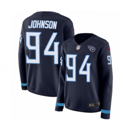 >Women's Nike Tennessee Titans #94 Austin Johnson Limited Navy Blue Therma Long Sleeve NFL Jersey