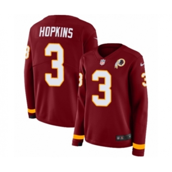 Women's Nike Washington Redskins #3 Dustin Hopkins Limited Burgundy Therma Long Sleeve NFL Jersey