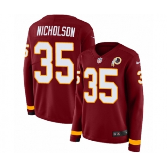 >Women's Nike Washington Redskins #35 Montae Nicholson Limited Burgundy Therma Long Sleeve NFL Jersey