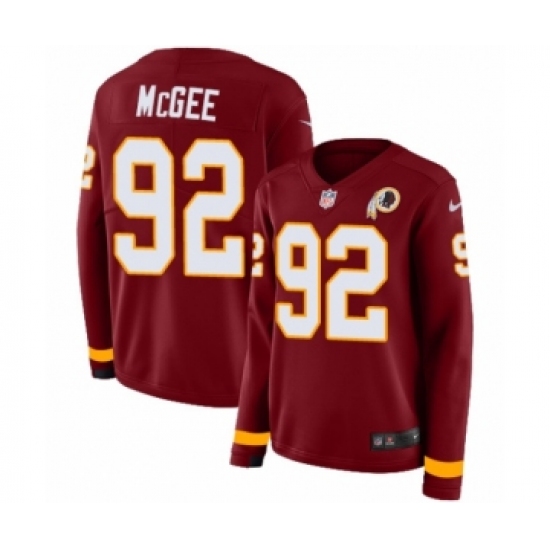 Women's Nike Washington Redskins #92 Stacy McGee Limited Burgundy Therma Long Sleeve NFL Jersey