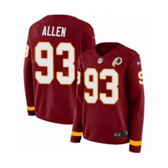 Women's Nike Washington Redskins #93 Jonathan Allen Limited Burgundy Therma Long Sleeve NFL Jersey