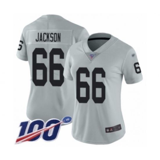 >Women's Oakland Raiders #66 Gabe Jackson Limited Silver Inverted Legend 100th Season Football Jersey