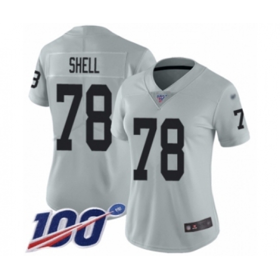 Women's Oakland Raiders #78 Art Shell Limited Silver Inverted Legend 100th Season Football Jersey