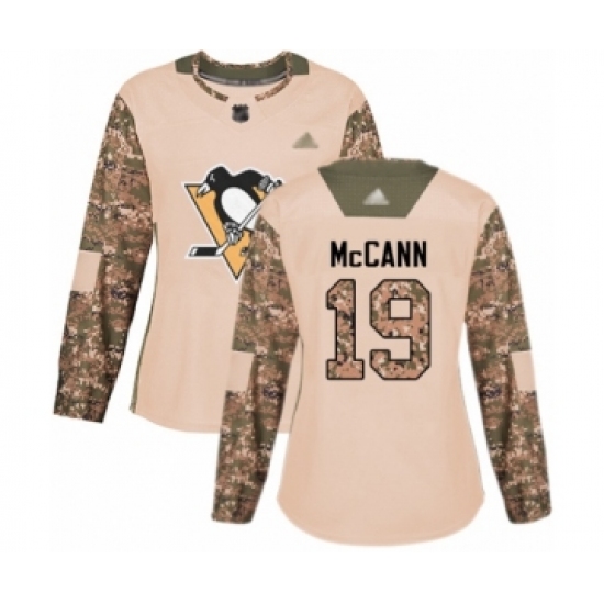 Women's Pittsburgh Penguins #19 Jared McCann Authentic Camo Veterans Day Practice Hockey Jersey