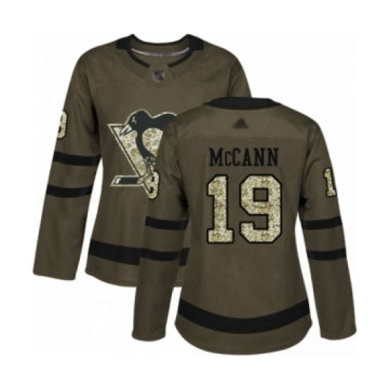 >Women's Pittsburgh Penguins #19 Jared McCann Authentic Green Salute to Service Hockey Jersey