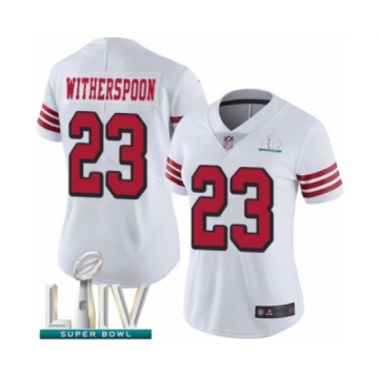 >Women's San Francisco 49ers #23 Ahkello Witherspoon Limited White Rush Vapor Untouchable Super Bowl LIV Bound Football Jersey