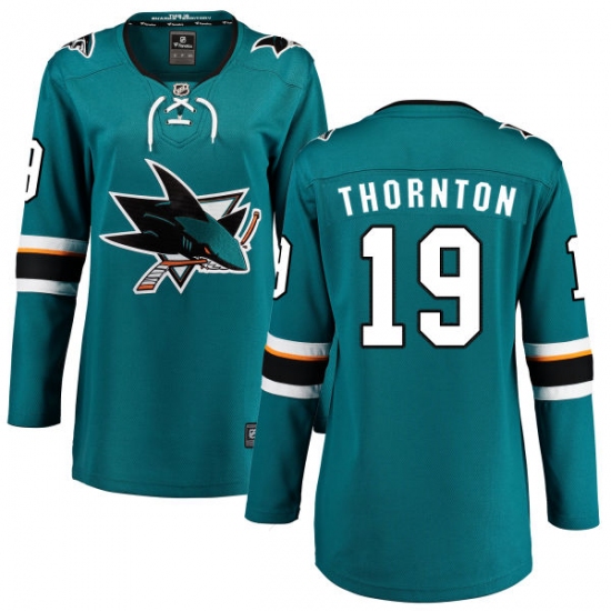 Home>NHL>San Jose Sharks>Joe Thornton>Women's San Jose Sharks #19 Joe Thornton Fanatics Branded Teal Green Home Breakaway NHL Jersey