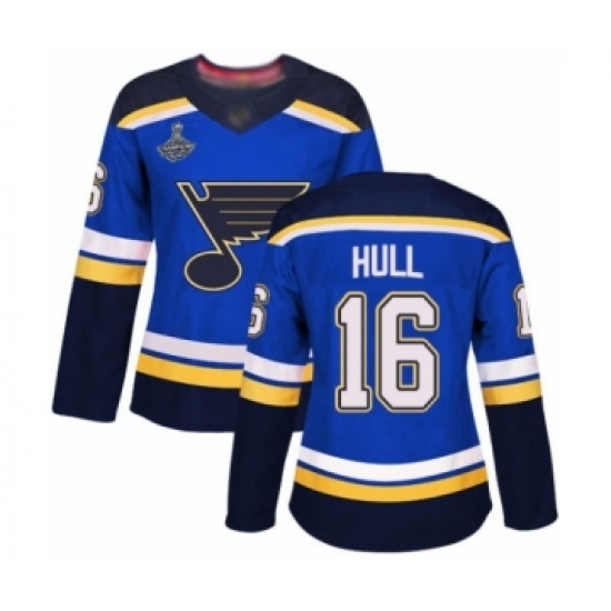 Women's St. Louis Blues #16 Brett Hull Authentic Royal Blue Home 2019 Stanley Cup Champions Hockey Jersey