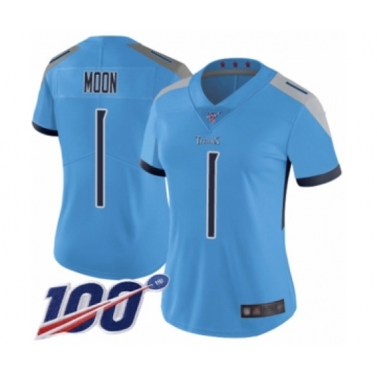 >Women's Tennessee Titans #1 Warren Moon Light Blue Alternate Vapor Untouchable Limited Player 100th Season Football Jersey