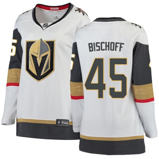 Women's Vegas Golden Knights #45 Jake Bischoff Authentic White Away Fanatics Branded Breakaway NHL Jersey