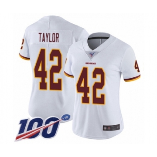 >Women's Washington Redskins #42 Charley Taylor White Vapor Untouchable Limited Player 100th Season Football Jersey