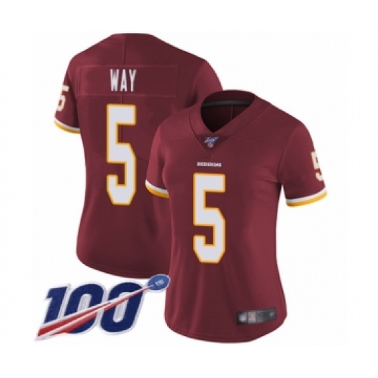 >Women's Washington Redskins #5 Tress Way Burgundy Red Team Color Vapor Untouchable Limited Player 100th Season Football Jersey