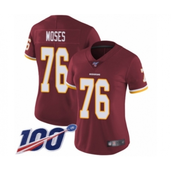 Women's Washington Redskins #76 Morgan Moses Burgundy Red Team Color Vapor Untouchable Limited Player 100th Season Football Jersey