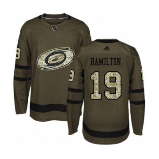 >Youth Adidas Carolina Hurricanes #19 Dougie Hamilton Authentic Green Salute to Service NHL Jersey