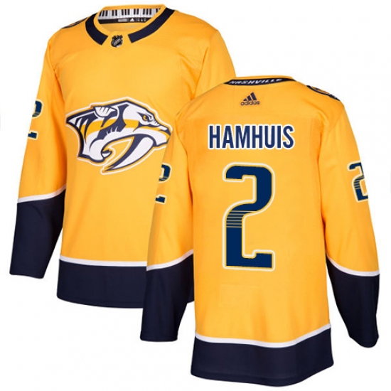 >Youth Adidas Nashville Predators #2 Dan Hamhuis Authentic Gold Home NHL Jersey