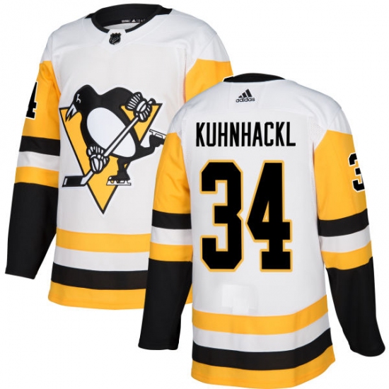 Home>NHL>Pittsburgh Penguins>Tom Kuhnhackl>Youth Adidas Pittsburgh Penguins #34 Tom Kuhnhackl Authentic White Away NHL Jersey