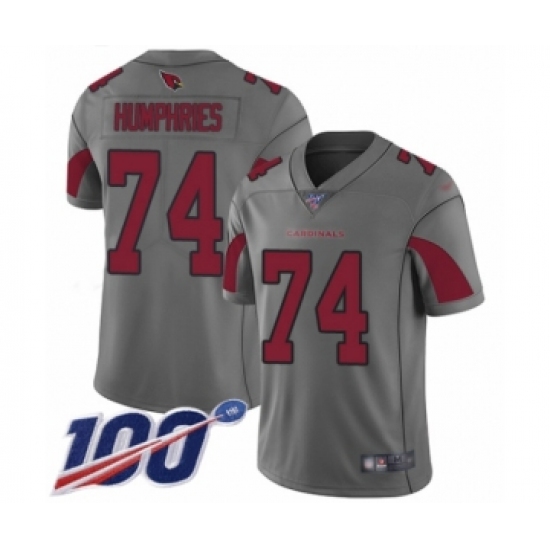 >Youth Arizona Cardinals #74 D.J. Humphries Limited Silver Inverted Legend 100th Season Football Jersey