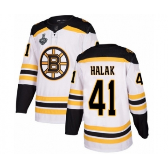>Youth Boston Bruins #41 Jaroslav Halak Authentic White Away 2019 Stanley Cup Final Bound Hockey Jersey