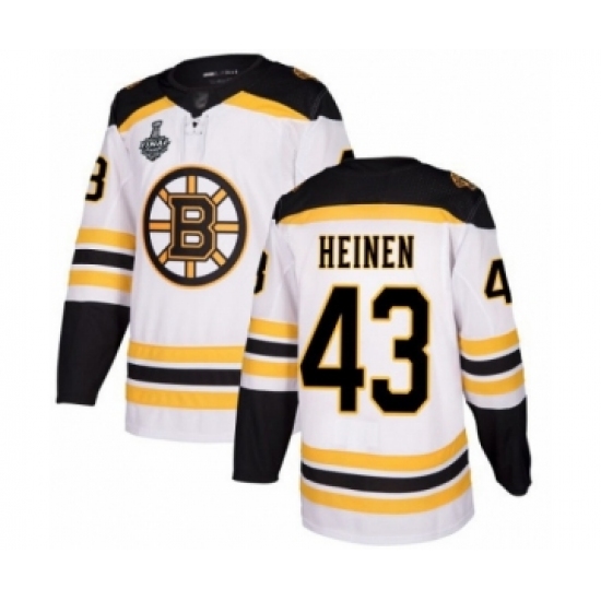 >Youth Boston Bruins #43 Danton Heinen Authentic White Away 2019 Stanley Cup Final Bound Hockey Jersey