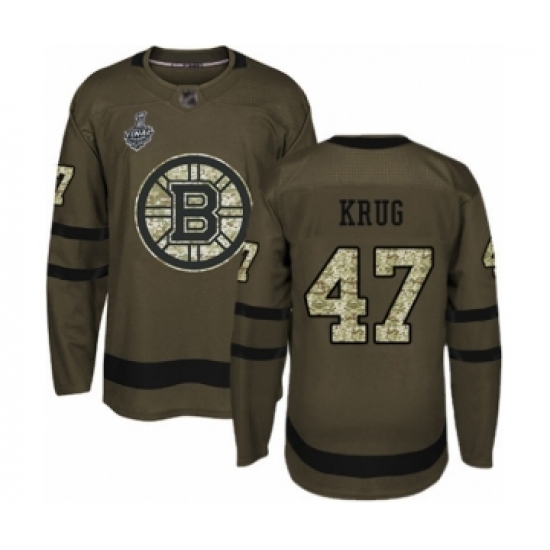 >Youth Boston Bruins #47 Torey Krug Authentic Green Salute to Service 2019 Stanley Cup Final Bound Hockey Jersey