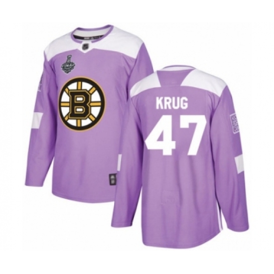 Youth Boston Bruins #47 Torey Krug Authentic Purple Fights Cancer Practice 2019 Stanley Cup Final Bound Hockey Jersey