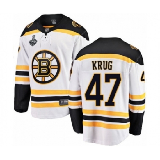 Men's Boston Bruins #47 Torey Krug Authentic White Away 2019 Stanley Cup Final Bound Hockey Jersey