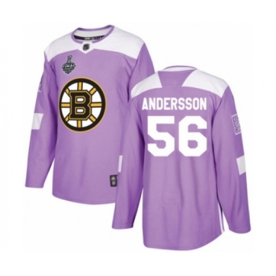 >Youth Boston Bruins #56 Axel Andersson Authentic Purple Fights Cancer Practice 2019 Stanley Cup Final Bound Hockey Jersey