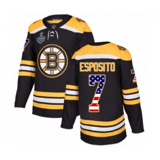 Youth Boston Bruins #7 Phil Esposito Authentic Black USA Flag Fashion 2019 Stanley Cup Final Bound Hockey Jersey