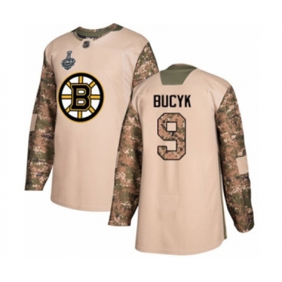 Youth Boston Bruins #9 Johnny Bucyk Authentic Camo Veterans Day Practice 2019 Stanley Cup Final Bound Hockey Jersey