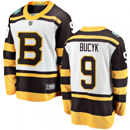 >Youth Boston Bruins #9 Johnny Bucyk White 2019 Winter Classic Fanatics Branded Breakaway NHL Jersey