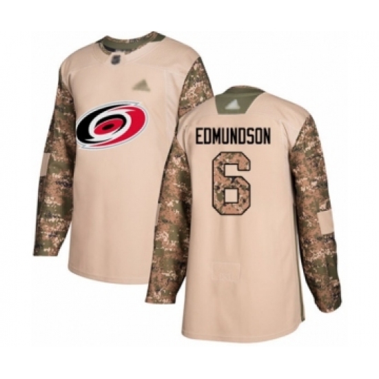 >Youth Carolina Hurricanes #6 Joel Edmundson Authentic Camo Veterans Day Practice Hockey Jersey