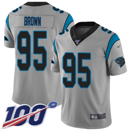 Men's Carolina Panthers #95 Derrick Brown Silver Stitched NFL Limited Inverted Legend 100th Season Jersey