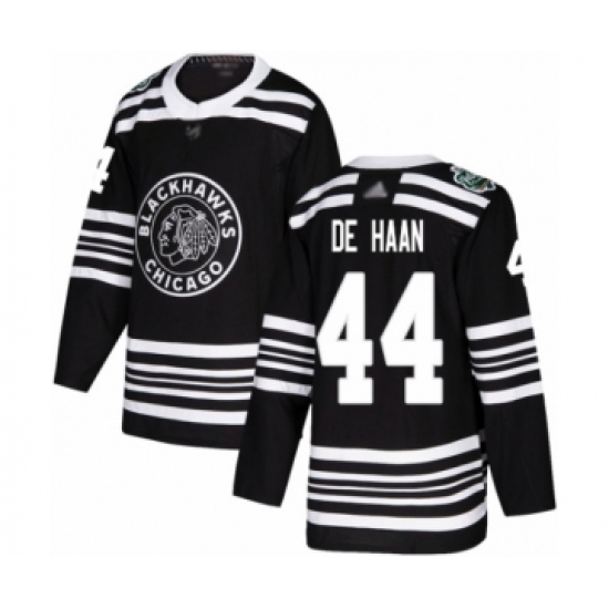 >Youth Chicago Blackhawks #44 Calvin De Haan Authentic Black 2019 Winter Classic Hockey Jersey