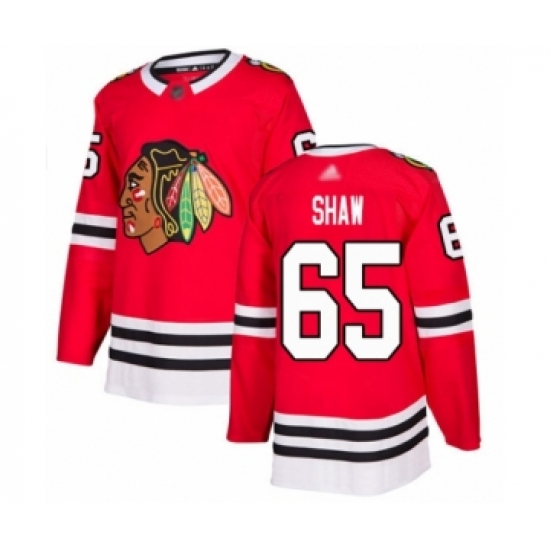 >Youth Chicago Blackhawks #65 Andrew Shaw Authentic Red Home Hockey Jersey
