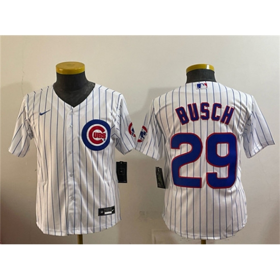 >Youth Chicago Cubs #29 Michael Busch White Cool Base Stitched Baseball Jersey