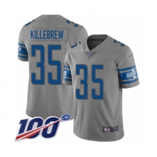 >Youth Detroit Lions #35 Miles Killebrew Limited Gray Inverted Legend 100th Season Football Jersey