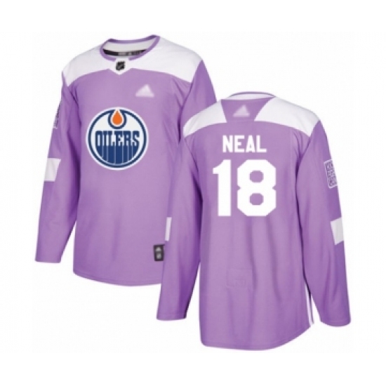 >Youth Edmonton Oilers #18 James Neal Authentic Purple Fights Cancer Practice Hockey Jersey