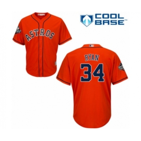 Youth Houston Astros #34 Nolan Ryan Authentic Orange Alternate Cool Base 2019 World Series Bound Baseball Jersey