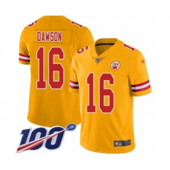 >Youth Kansas City Chiefs #16 Len Dawson Limited Gold Inverted Legend 100th Season Football Jersey