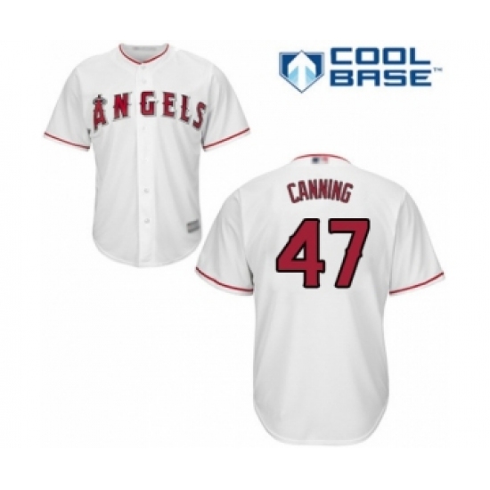 >Youth Los Angeles Angels of Anaheim #47 Griffin Canning Authentic White Home Cool Base Baseball Player Jersey