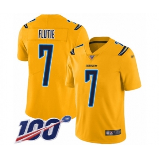 >Youth Los Angeles Chargers #7 Doug Flutie Limited Gold Inverted Legend 100th Season Football Jersey