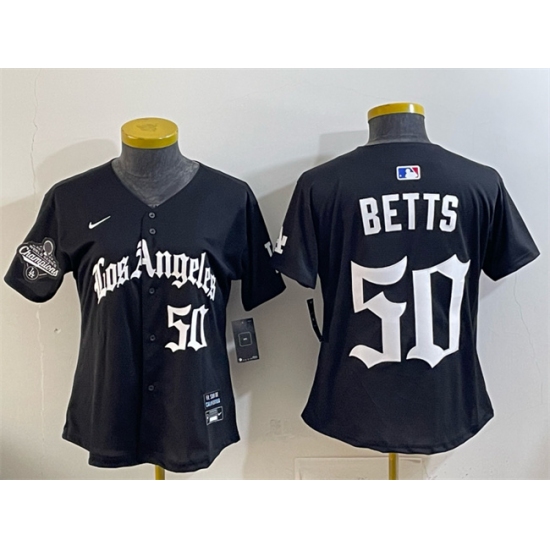 Youth Los Angeles Dodgers #50 Mookie Betts Black 2025 World Series Champions LA Gothic Edition Limited Stitched Baseball Jersey