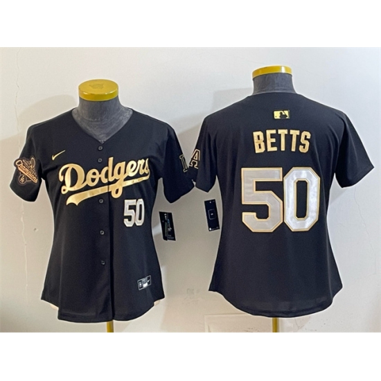 >Youth Los Angeles Dodgers #50 Mookie Betts Black Gold 2025 World Series Champions Limited Stitched Baseball Jersey