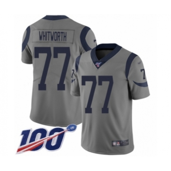 >Youth Los Angeles Rams #77 Andrew Whitworth Limited Gray Inverted Legend 100th Season Football Jersey