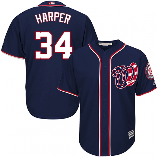 Home>MLB>Washington Nationals>Bryce Harper>Youth Majestic Washington Nationals #34 Bryce Harper Authentic Navy Blue Alternate 2 Cool Base MLB Jersey