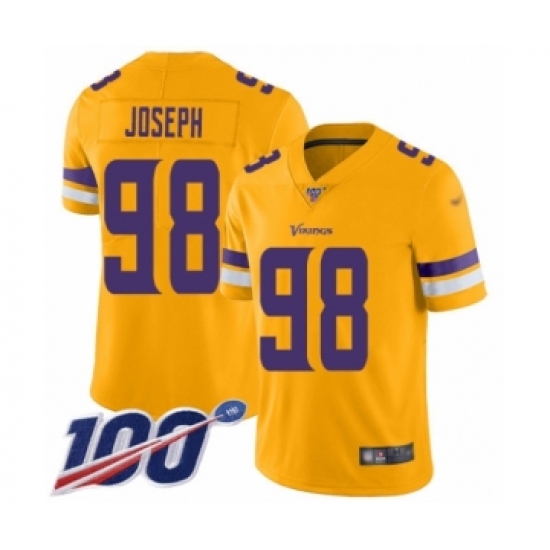 >Youth Minnesota Vikings #98 Linval Joseph Limited Gold Inverted Legend 100th Season Football Jersey
